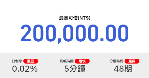 *最高可借金额(NT$):50萬
